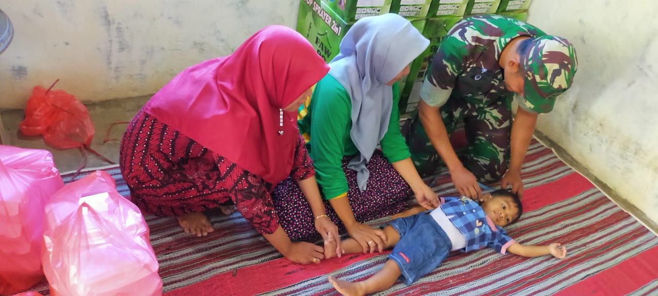 JOMBANGKAB - Mojowarno Peran aktif Babinsa Desa Japanan Serda Andik Miftahudin adalah anggota Koramil 15/Mojowarno jajaran Kodim 0814 Jombang, membantu warga desa binaannya melaksanakan kegiatan Posyandu balita cempaka 5 bersama bidan desa ibu Ria bertempat di Dusun Gembrong Desa Japanan Kec. Mojowarno, yang diikuti lebih dari 47 orang sekitar.(Selasa 04/02/2020)