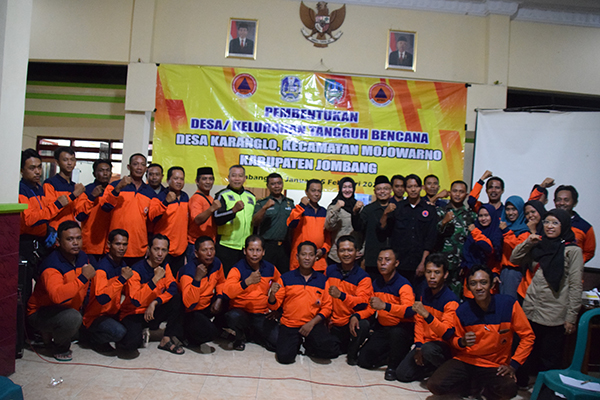 Pada sambutan Staf PK BPBD Provinsi Jawa timur Tiffany Rita Bawole.SE. MM intinya Desa karanglo akan menjadi percontohan desa tangguh bencana dari Kabupaten Jombang, maka pembentukan ini perlu sinkronisasi pemerintah daerah setempat, Intansi Kepolisian (Polsek) dan Intansi Militer (Koramil ) agar terlaksananya program ini. Tujuan memberi kesadaran kepada masyarakat tentang kepedulian kebencanaan. Rencana pelatihan selama 7 hari. Para peserta tanggap bencana Ini merupakan fasilator untuk masyarakat sekitar dalam menghadapai bencana alam.