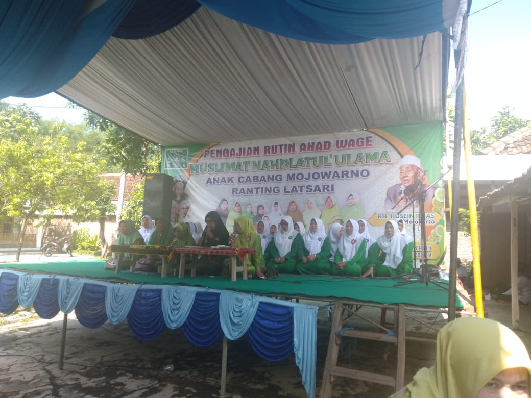 Pengajian rutin Ahad Wage yang diselenggarakan Pimpinan Anak Cabang (PAC) Muslimat Nahdlatul Ulama Mojowarno, Jombang, Jawa Timur yang dilaksanakan pada minggu, 23 Februari 2020 di Musholah At Taqwa Dusun Jambangan Desa Latsari Kecamatan Mojowarno Kabupaten Jombang.