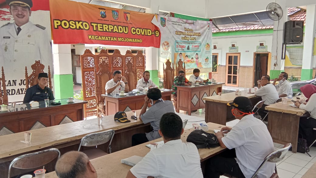 Mojowarno - Kegiatan rapat dinas dilaksanakan di pendopo Kecamatan Mojowarno, (27/05/2020). Acara dipimpin langsung oleh Camat Mojowarno, Arief Hidajat, SH.MSi, hadir dalam acara tersebut dari Polsek , Kepala KUA, Koramil Mojowarno, dan Kepala Desa se-Kecamatan Mojowarno.