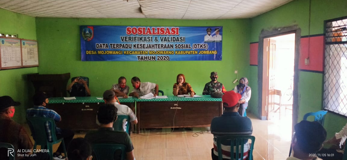 JOMBANGKAB - Mojowarno, Kegiatan Sosialisasi Verval DTKS tahun 2020, di balai desa Mojowangi Kecamatan Mojowarno, 05/11/2020.